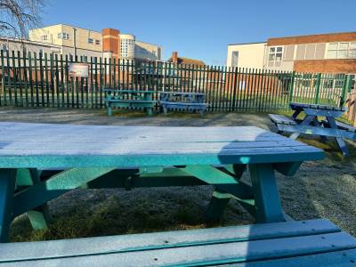 A bitterly cold, crisp morning on our campus, which looked stunning in the bright early morning sunshine. Most of our car thermometers told us it was -5 deg C or below!
